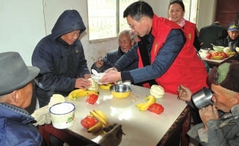 21日上午,咸宁义工带着汤圆、包子和水果分别来到咸安区汀泗、浮山和贺胜等三家福利院,和老人一起共度元宵节。图为义工在汀泗福利院为老人准备汤圆。 方达星/摄