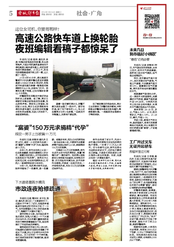 高速公路快车道上换轮胎 夜班编辑看稿子都惊呆了