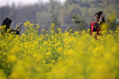 春季到了,漫山遍野的油菜花相继开放,满满的黄色映入眼帘。不少市民纷纷外出郊游,感受春的气息。 张仰强/摄