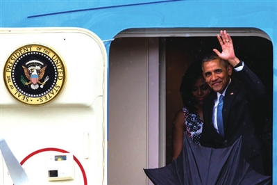 奥巴马乘美国总统专机“空军一号”于当天下午4时25分抵达哈瓦那何塞·马蒂国际机场。奥巴马的夫人和两个女儿,以及部分民主党、共和党国会议员和政府官员同机抵达。