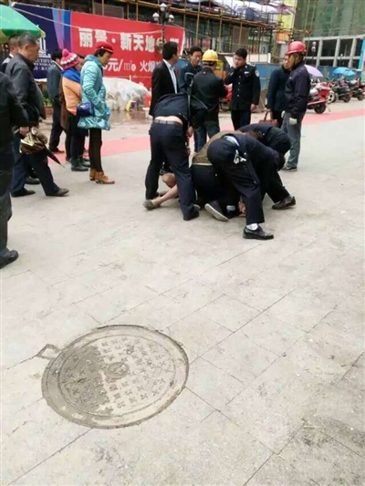 接到报警后,民警迅速赶到现场。见民警到来,变态男子没有逃离,反而拿着刀指着民警叫嚣。民警很快将男子手上的刀夺下,准备将该男子制服时,他突然又从身上拿出另一把刀,对着一民警脸部划了一刀。民警受伤后,忍痛和其他民警一起将变态男子制服。