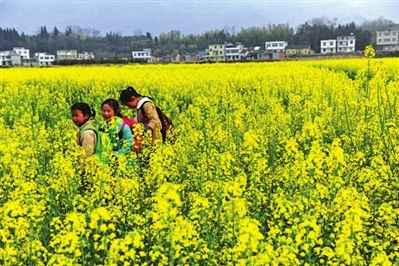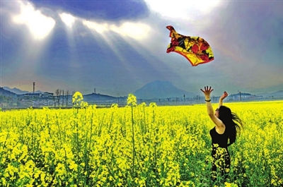 油菜花,绚丽夺目,满垄满畈,村前屋后,田埂上的风景,没有关卡的风景,引诱一把衣袖,热烈如故,欢心入骨,田野中的奔放,没有拘束,如行云流水,飘到幻想的天际,流到内心深处。把天给你看,把心给你看,把风景看个遍,一直惹得你惦记,一直惹得你回忆。