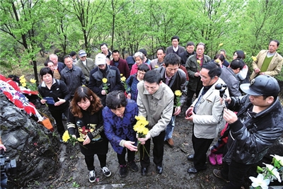 着名剧作家、曾出版《壮士无言》一书的沈虹光和丈夫一起,献上了鲜花。湖北科技学院历史系退休教授丁一、省政府文史馆相关负责人,还有自发前来的周边村民,都献上了鲜花。