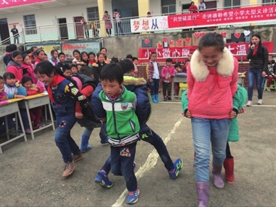 今年1月27日,团省委、团市委、市直驻新屋村精准扶贫工作队共同组织28名省“青社工程”学员,来到新屋村德勤希望小学开展“精准扶贫·春暖童心”活动,为孩子们送去新春的礼物和祝福。他们得知,这些孩子的父母大多选择去外地务工来维持家里生计。孩子们每天要走很远的山路来上学,小小年纪就要学会照顾弟弟妹妹,甚至要照顾爷爷奶奶。