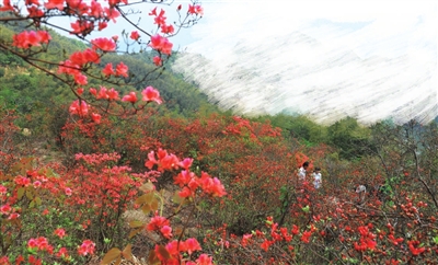 香城泉都,花海如潮。满山的野樱花刚刚“谢幕”,杜鹃花又迎风盛开。