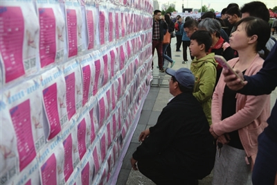 舞台上,“香城恋爱季,缘来就是你”的喷绘背景格外醒目;舞台下,写满男女青年资料的“寻缘墙”分外抢眼……16日下午3时许,距离相亲会开始还有1个小时,市人民广场相亲会报名处已挤满了人,他们既有参加活动的单身青年,也有跟随而来的亲朋好友。