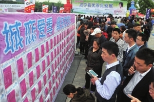 喝了茶,看了戏,舞台中央的贴有资料的“寻缘墙”围满了单身男女,大家正目不转睛地寻找自己心仪的对象。通过游戏互动,进一步了解,多位有情人最终幸福牵手。