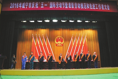昨日上午,我市在市会议中心隆重举行庆祝“五一”国际劳动节暨全市劳动模范和先进工作者表彰大会,全市31名劳动模范、28名先进工作者受到表彰。陈婧/摄