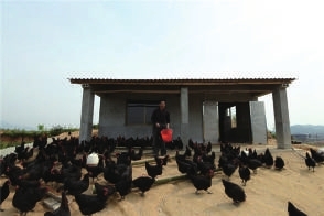 产业园建成后,毛怡旺进园养鸡,每个月有1500元的工资。他早上把鸡放出来喂食,晚上再把它们赶进鸡舍,其余时间,他去照顾妻子,耕种田地,可谓一举三得。一年下来,园内可出栏鸡鸭40000只,毛怡旺增收近2万元。