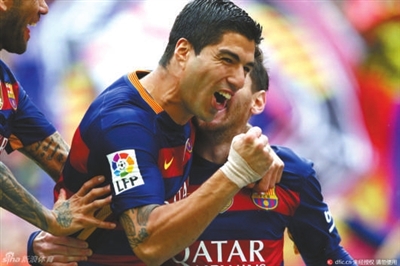 巴萨主场对阵同城死敌西班牙人。巴萨的进球也没有让诺坎普球迷等待太久,第8分钟,梅西主罚禁区前任意球,直挂球门右上角,客队门将扑了一下也无力阻止皮球入网。这是梅西本赛季联赛打进的第4个任意球。下半时巴萨火力全开,第52分钟和61分钟,苏亚雷斯梅开二度。此后,拉菲尼亚和内马尔又锦上添花。