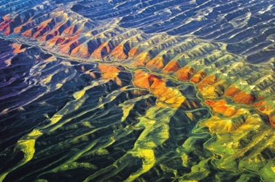 当蒋利群将他的作品摆在我前面一张一张翻阅时,我惊异于他从高空俯瞰大地所带来的惊人之美,这种美除了让我惊叹自然的神奇之外,更为他这些年来所取得的进步而鼓掌。这些作品充分证明一位艺术理论家所说:“艺术让我们扩展日常生活的维度。” 他拉开了摄影家与自然的距离,他以宏观的角度俯瞰自然,将我们熟悉的山川形态转化为点、线、面、色等近乎抽象的构成。抽象的提炼,展现的是一位摄影家的独特视角:它虽然无法摆拍,但它却有待摄影家的取舍。