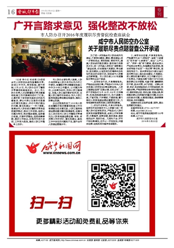 咸宁市人民防空办公室关于履职尽责点题督查公开承诺