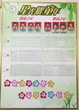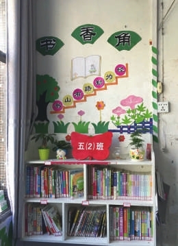 长长的文化墙,既有中国古典名着图文并茂式的介绍,也有整个小学课外阅读经典书目的罗列;楼道里,悬挂着一幅幅学生的诗配画作品;每一层楼的廊厅正中(间),有小小的“读书廊”,宁静而温馨;教室里,图书角成了一道亮丽的风景,整齐摆放的图书和春意盎然的绿色植物相互辉映,为同学们创造了一个优雅的阅读环境。