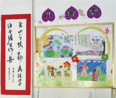 “文雅、儒雅、高雅”的校园文化是南小人的共同追求。南门小学的环境建设彰显书法艺术教育内涵。上学期我们着力打造办公室墨香文化,让老师们的书法作品装点办公室,营造浓厚的墨香氛围。本学期,学校着力建设楼道文化和墨香亭。教学楼楼道由师生亲自动手布置,全部装裱师生的书法作品,含硬笔、毛笔、诗配画、手抄报等。让书香墨香溢满整个教学楼。