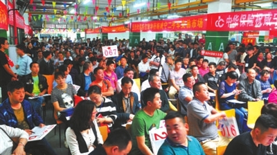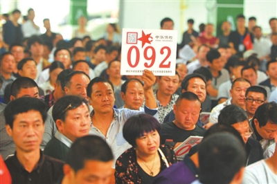 9万5、9万6、9万8……12万、12万5……现场只听拍卖师一口气喊出四五个价位。竞拍者不断举牌,竞拍价也水涨船高。记者注意到,当起拍价拍到12万后,多个竞拍者开始翻倍加价。