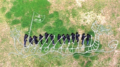 近日,南京信息工程大学团委官方微信发布了一组创意航拍毕业照,走红网络。这组毕业照出自南信大地理与遥感学院,毕业生们利用无人机航拍加后期制作,以草地为画布,用身体组成各种图案,设计出充满趣味的毕业大片,以此来纪念逝去的四年大学青春。 (来源:中国江苏网)