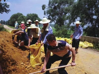 7月10日,咸安区向阳湖围垸水位已达超保证水位,咸安区迅速成立了一支60人的抢险突击队,连续奋战2天排险。 陈志茹廖咏絮徐少强/摄