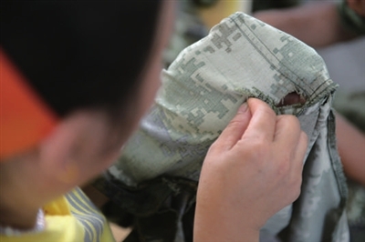 王阿姨今年50多岁,儿子是一名退伍军人。她对记者说:“这些武警官兵不远千里来保护我们的家园,别的忙帮不上,缝补衣服的小事能做到。”