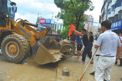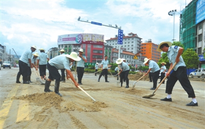昨日,通城县开展县城“三清一防(沙泥清运、垃圾清扫、街道清洗、卫生防疫)”工作。至昨晚7时许,该县城管、环卫部门共投入300余人次,清运淤泥、垃圾一千余吨。县城主干道的淤泥、污渍已被清运干净,交通秩序和居民日常生活已基本恢复正常。 赵忠志/摄