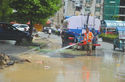 昨日一大早,该县城管、环卫、园林等部门300余名干部职工率先行动,先后调集洒水车、清扫车、清洗车31台次,对城区积水路段的淤泥、垃圾进行清扫、清运。8点刚过,该县县直机关及企事业单位的党员干部职工纷纷走向街头开展“三清”行动。大家穿着雨鞋,拿着铁锹,将积水退去后留下的淤泥、垃圾铲到一起,进行初步集中后,再由城管、环卫部门调集的清运车进行集中清运。