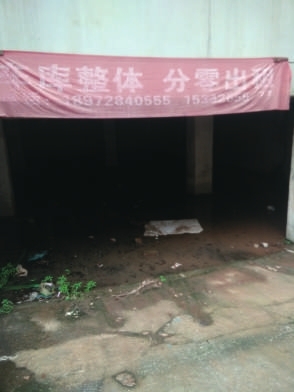 昨日上午,记者来到桂泉小区E栋居民楼了解情况。还没走到车库前,记者就闻到了一股难闻的气味,车库的入口处铺满了淤泥和各种各样的垃圾,里面也满是积水。