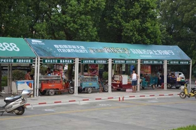 如何更有效地管理流动摊贩?今年5月底,市城管执法局负责人通过实地调研,与林业部门沟通协商,决定在潜山广场划设一处流动摊贩临时安置点。随后,市城管四大队在该处放置10个遮阳棚,免费提供给流动摊贩经营。潜山森林公园管理处向摊贩适当收取少量卫生费,负责安置点的卫生保洁。