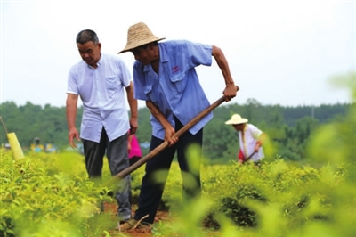 这些农民中,来自附近九彬村的陈恢志已经63岁了,由于手脚勤快,他被茶园老板聘为了固定工人。在现场,他一边除草,一边告诉记者:“这里面积大,几乎天天都有事情干,每个月能拿3000元左右的工钱。再加上我家里种的7亩地,一年下来大概有10万多元的总收入,比以前光种地强多了!”