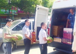 8月19日,该局领导班子会同一支部书记、委员一起,带上西瓜、加多宝等防暑降温物品,驱车前往物流中心、各部、所(队),给正顶着烈日送烟的一线员工送去一份清凉和关怀,并叮嘱他们注意做好防暑降温措施、注意自身安全。
