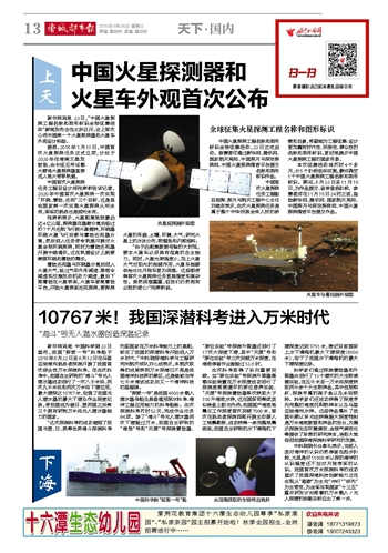 中国火星探测器和火星车外观首次公布