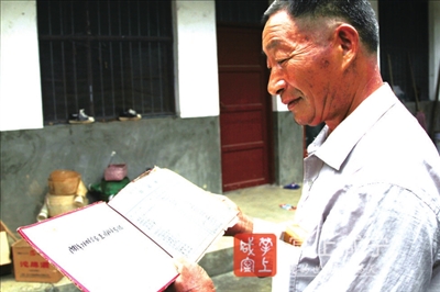 今年崇阳县进行农村土地确权,到他家时,他发现土地的亩数弄错,他便找出账本来翻出当年的记录,进行了纠正。