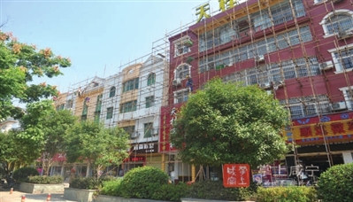 18日,记者在市区银泉大道看到,工人们正在全面整治街道立面。据了解,银泉大道立面整治工程起点为永安大道与银泉大道交叉口,终点为南外环交叉口,总长约8.2公里,改造内容主要包括清洗刷新临街建筑物立面、规范改造墙面、屋顶户外广告和临街门店招牌、、统一规整外空调机位等。此次立面整治以现代风格为主,改造后城市形象进一步提升。 记者 赵忠志/摄