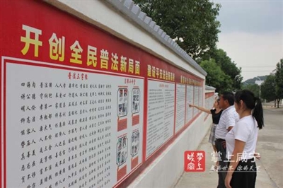 该法治文化长廊内容以法律常识、土地流转、生态保护、人民调解、平安建设等群众关心、关注的相关知识为主。通过诙谐风趣的法制漫画、浅显易懂的流程图、朗朗上口的普法三字经等图文并茂、生动活泼的形式让群众能够出门见法,抬头学法,在潜移默化中接受法治文化熏陶。 张春兰 陈洁琼/摄