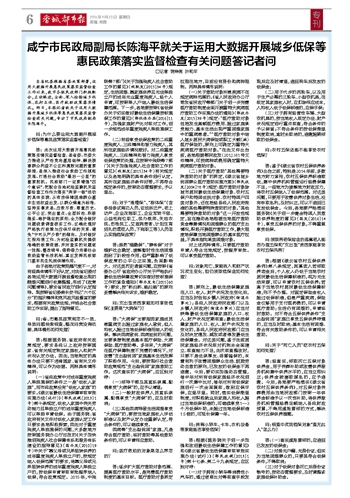 咸宁市民政局副局长陈海平就关于运用大数据开展城乡低保等惠民政策落实监督检查有关问题答记者问