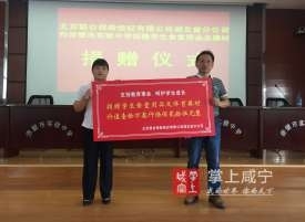 本报讯(记者 熊大平)为构建和谐平安校园建设、提高学校办学条件,9月22日上午北京联合保险经纪有限公司湖北省咸宁市营业部来到赤壁市实验中学。向该校捐赠价值十万余元的物品,包括餐桌70套、乒乓球台11副、排球50个等。