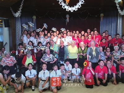 活动之余,学生们还前往Haus Wieden养老院,进行公益慰问演出。来自各地的小朋欢聚一起将各自编好的节目,一一上台为养老院的老人献歌献舞。咸宁小朋友上台了,身穿中国红校服,头带中国结,一段《江南桂花香》的合唱,格外吸引眼球,台下,Haus Wieden养老院的老奶奶抚摸着咸宁小朋友的衣服,感慨道:“听到天籁之音的——江南桂花香,才明白桂花可以有风香十里,无风十里香的一种意境。”