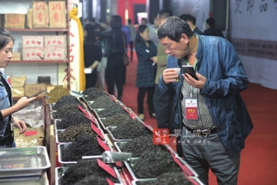 在第四届中国有机农产品展销会暨中国青(米)砖茶交易会现场,这样的场景随处可见,也吸引了广大客商和市民的关注。