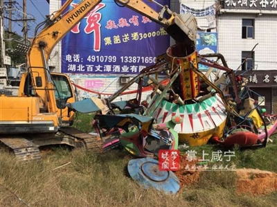 本报讯(通讯员杨忠信 胡颖)为配合通城县政府建设老广场停车场,10月18日,通城县城管执法局组织专班力量拆除老广场残存的游乐设施。