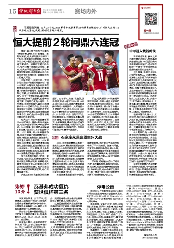 恒大提前2轮问鼎六连冠