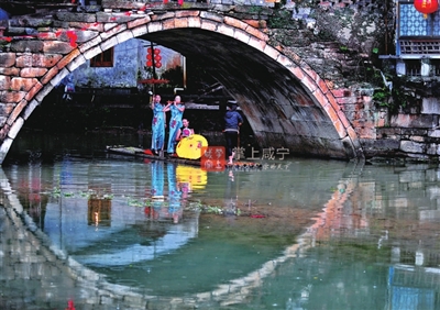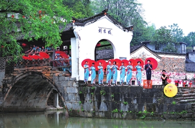 古韵的村庄,旗袍带风,衣袂飘飘,十指柔柔,古桥在村史的高处,张望南来北往,来来往往的旅者,看一场临风舞,听一曲桂花香。