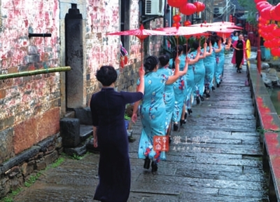 旗袍国风韵,忽如春风来,欢快地秀起,愉悦地走台。在广场,在街巷,在古居,在康庄,在水之湄,在廊桥上。走过明清、走过民国、走向现代,走到你的迷香衣架,走出你的玲珑闺梦。