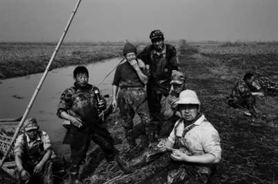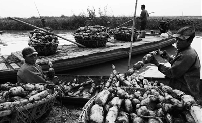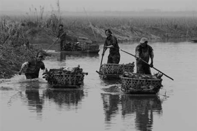 从早上六点到下午五点,除去午餐时间,在冷水和淤泥中作业超 10 个小时……装好筐,装满船,大家相互帮衬着把一天的成果划向湖中水道,上岸、过磅,计数……