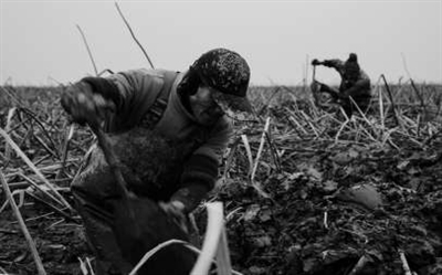 一件下水衣、一双橡胶手套、一把铁锹,一艘小船……天蒙蒙亮,冷飕飕的寒风继续吹着,打个冷颤,淌着水义无反顾地向一望无垠的藕湖行进……
