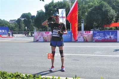 虽然脱下了军装,在外工作多年,从事自由的职业,但孙建华身上的“兵味”依然很浓。他扛着红旗跑完全程,挺拔的身姿展现出特有的自信。