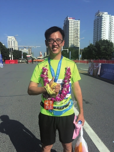 曹垒告诉记者,他今年27岁,来自武汉约跑社,以前一直跑半马,成绩一般是2小时12分。这是自己第一次全程马拉松,也是因为半马没名额才调整至参加全马比赛,感觉还不错。 (记者 镇强)