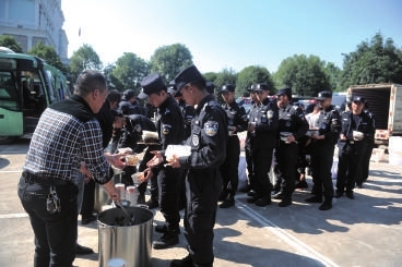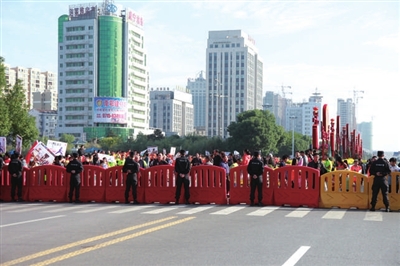 5时30分,全市3000多公安、武警和保安,已按事前的部署分工,全部到达指定位置,分别参加比赛场所的安检搜爆、警卫、道路封控、交通管制等工作。