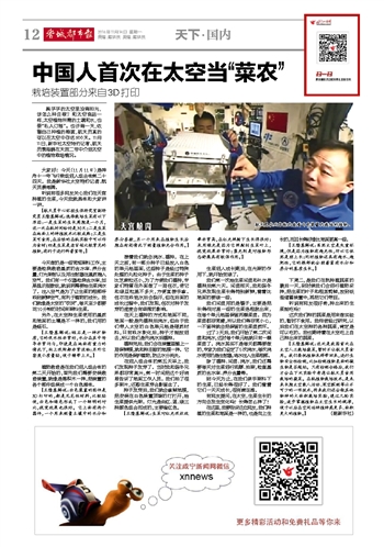 中国人首次在太空当“菜农”