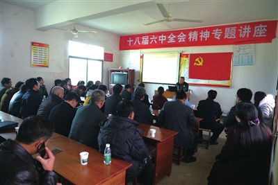 活动开始后,一场十八届六中全会精神”专题讲座在教学楼三楼率先开讲,来自中共咸宁市纪委宣传部的主讲人柯建斌,为大幕乡、村、组各级党政干部50人宣讲十八届六中全会精神,让大家更好地理解消化。