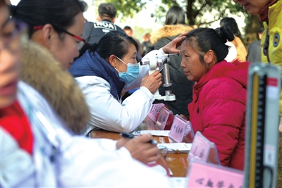“我的眼前总是感觉有层雾,一直看不清楚,怎么办?”在健康义诊咨询台前,来自该村一组的村民吴德云问道。市中心医院同济咸宁医院医生柴基桥经过仔细观察后说:“您这属于翼状胬肉,已经到了需要手术治疗的地步,否则可能会导致失明。”当天,他共为数十名老人检查眼睛,发放药品近百瓶。