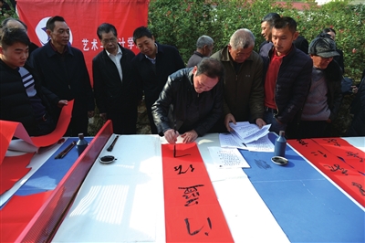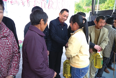 同时,市盐业公司、华琪集团、市农科院还为老乡们送来了140壶食用油、2000袋食用盐和各种蔬菜种子;来自湖北科技学院的孙世军老师在7名学生的协助下,为100多位村民写了喜庆吉祥的大红春联,受到大家的热烈欢迎。
