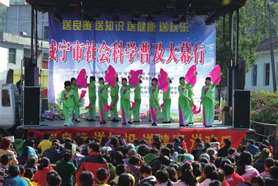 昨日,暖阳高照,咸宁市社科普及大幕行“四送”活动在咸安区大幕乡泉山口村热闹举行,200余名干部群众、男女老少在这里学政策、长知识、领福利、看演出,不仅收获满满,而且乐不思返。